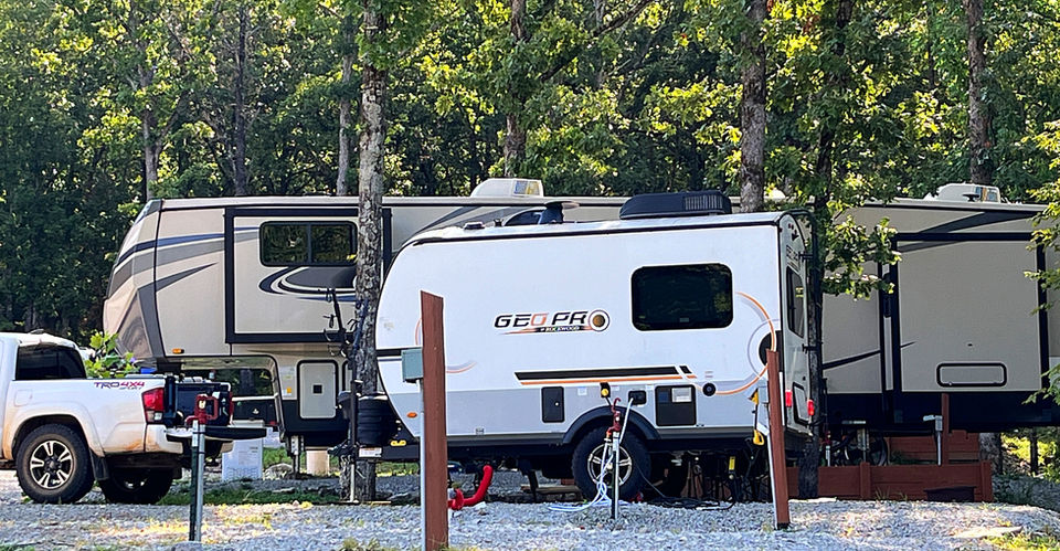 All sites include 50 amp electricity (adapters available for 50 to 30 amp), water, and sewer.